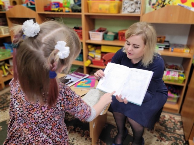 Была организована, традиционная для нашей группы "Солнышко", образовательная ситуация "А у нас гости..". Мама нашей воспитанницы Ксении Харчевой, Александра Михайловна, используя современные технические средства (презентация, видеозапись) и демонстрируя материалы (атрибуты учителя), рассказала о своей трудовой деятельности и дополнительных обязанностях (классное руководство). |