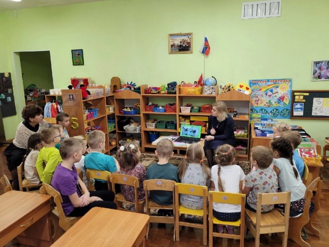Была организована, традиционная для нашей группы "Солнышко", образовательная ситуация "А у нас гости..". Мама нашей воспитанницы Ксении Харчевой, Александра Михайловна, используя современные технические средства (презентация, видеозапись) и демонстрируя материалы (атрибуты учителя), рассказала о своей трудовой деятельности и дополнительных обязанностях (классное руководство). |